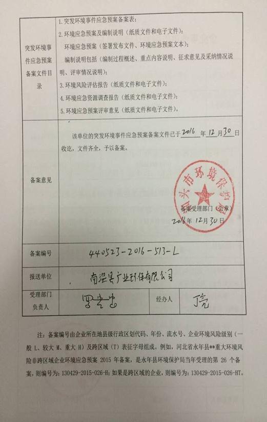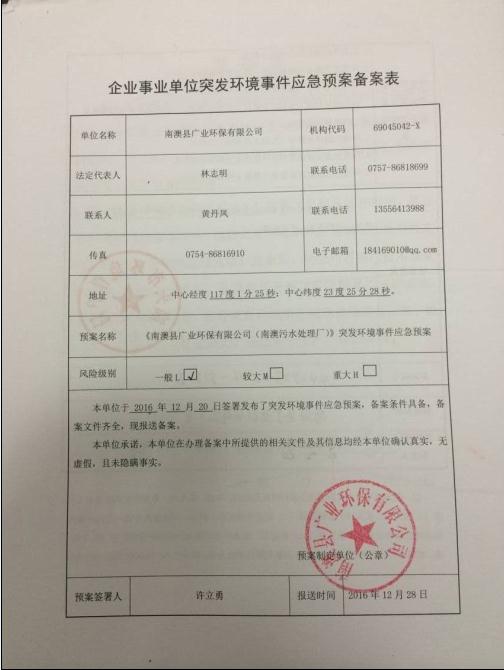 1、單位名稱: 南澳縣廣業(yè)環(huán)保有限公司